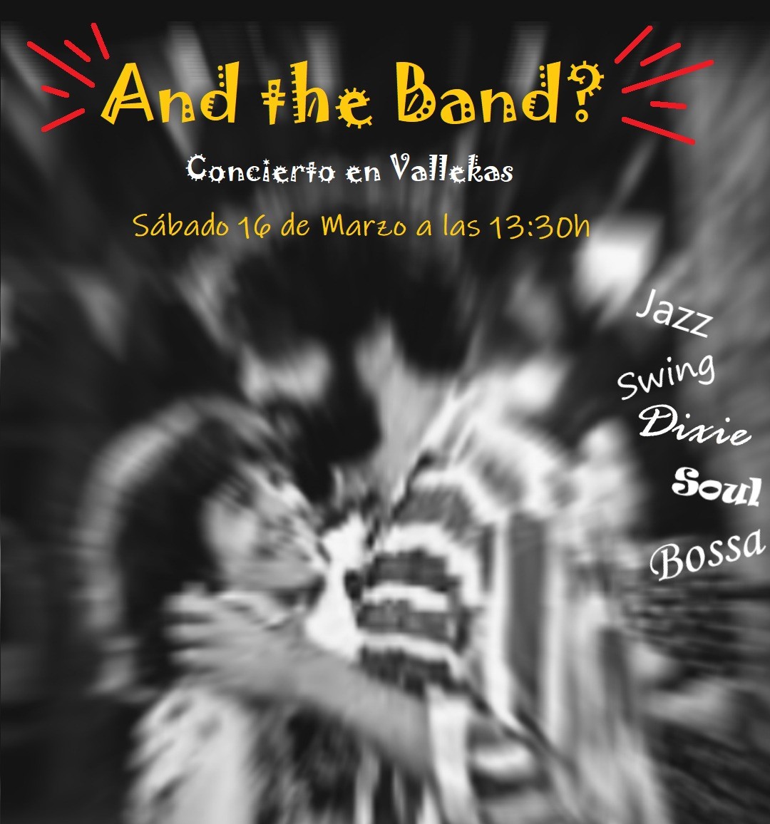 La big band «And the Band?» os espera de nuevo el sábado 16 de marzo a las 13:00, en la Sala Tacita de Plata del Centro Social Entrevías, C/ Calero Pita 3 (avda. de Entrevías)